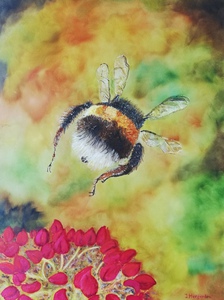 2019Miniature painting of a bee, part of a series of three.